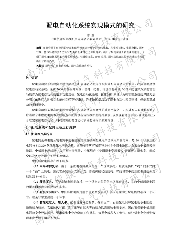 摘要 文章分析了配電網(wǎng)的特點和配網(wǎng)設(shè)備運行維護的特殊要求,從實現(xiàn)目標、實施范圍、用戶對象、基本功能等多個方面對配電自動化進行了重新定位,提出了配電房綜合自動化的概念,介紹了配電自動化系統(tǒng)的...