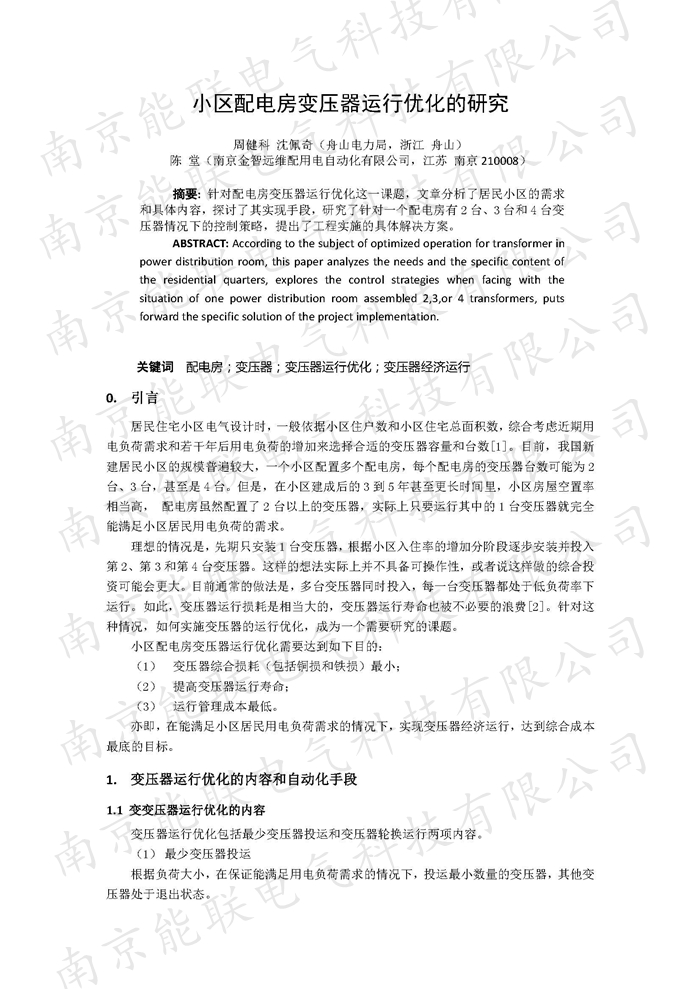 要: 針對配電房變壓器運行優(yōu)化這一課題,文章分析了居民小區(qū)的需求和具體內(nèi)容,探討了其實現(xiàn)手段,研究了針對一個配電房有 2 臺、3 臺和 4 ...