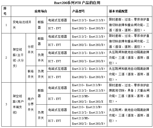 Enet200系列FTU和斷路器配合,可以應(yīng)用于變電站出線開關(guān)、分段/聯(lián)絡(luò)斷路器、用戶分界斷路器,具備相間故障檢測及跳閘功能,單相接地故障檢測及跳閘功能。