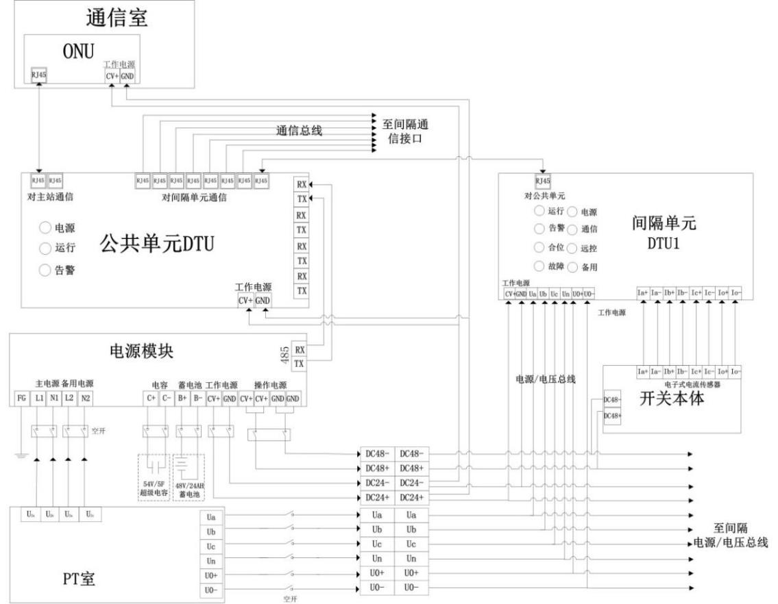 下圖為Enet490 DTU公共單元與Enet460 DTU間隔單元與開關(guān)電氣原理圖。