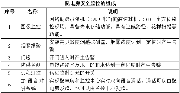 開閉所、配電房一般為無人值守,除了實現(xiàn)電氣監(jiān)控功能,應同時實現(xiàn)視頻監(jiān)控功能,以及防火、防水浸、防入侵等安全監(jiān)控功能,實施可視化運行和安全綜合監(jiān)控。因此,需要在配電房安裝智能綜合監(jiān)控設備,通過視頻監(jiān)控綜合平臺實現(xiàn)視頻監(jiān)控、煙霧報警、防洪監(jiān)測等綜合監(jiān)控功能。其他的一些智能監(jiān)控功能也是必須的,包括遠程燈光控制、語音對講等。