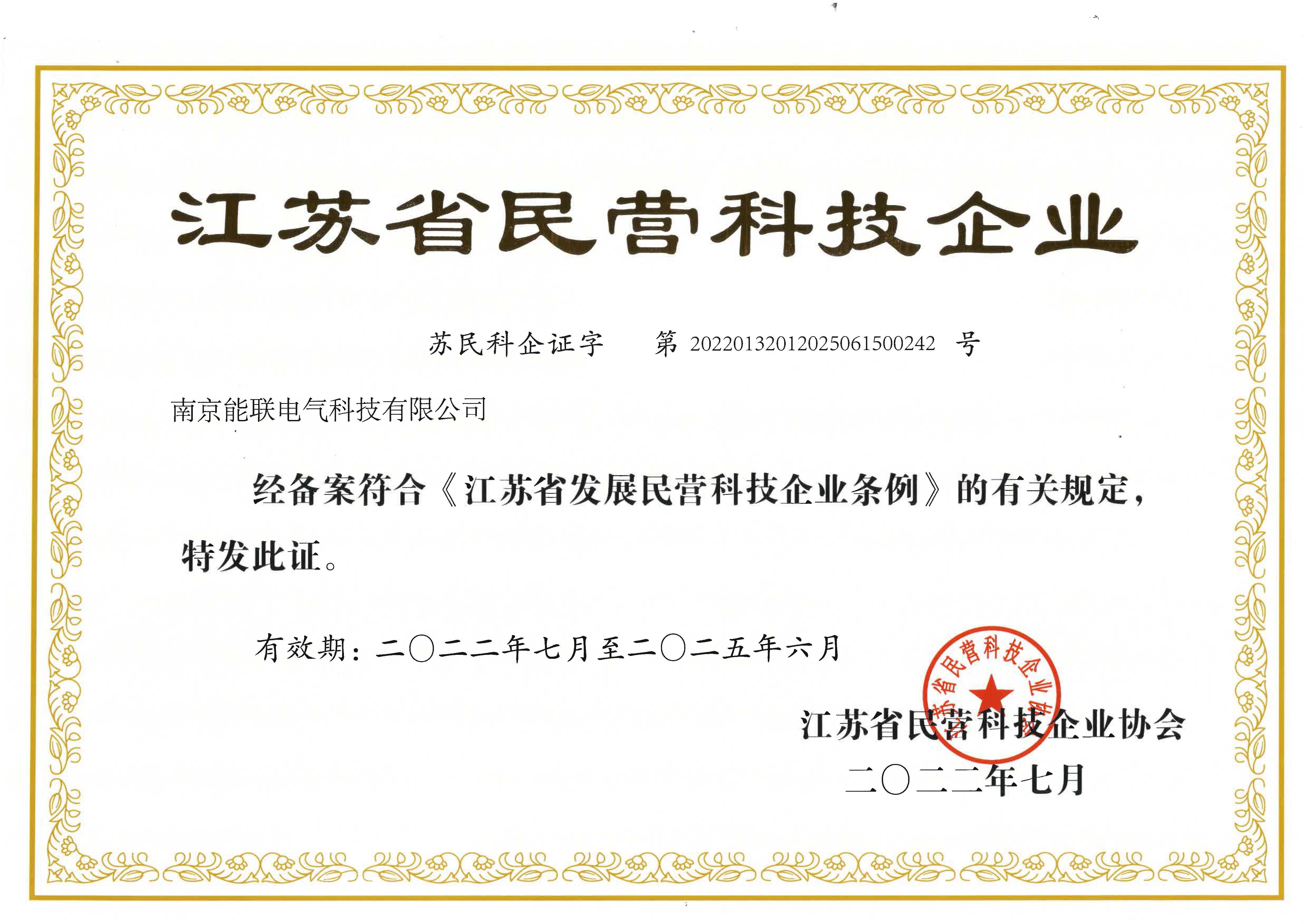 江蘇省民營(yíng)科技企業(yè)證書(shū)